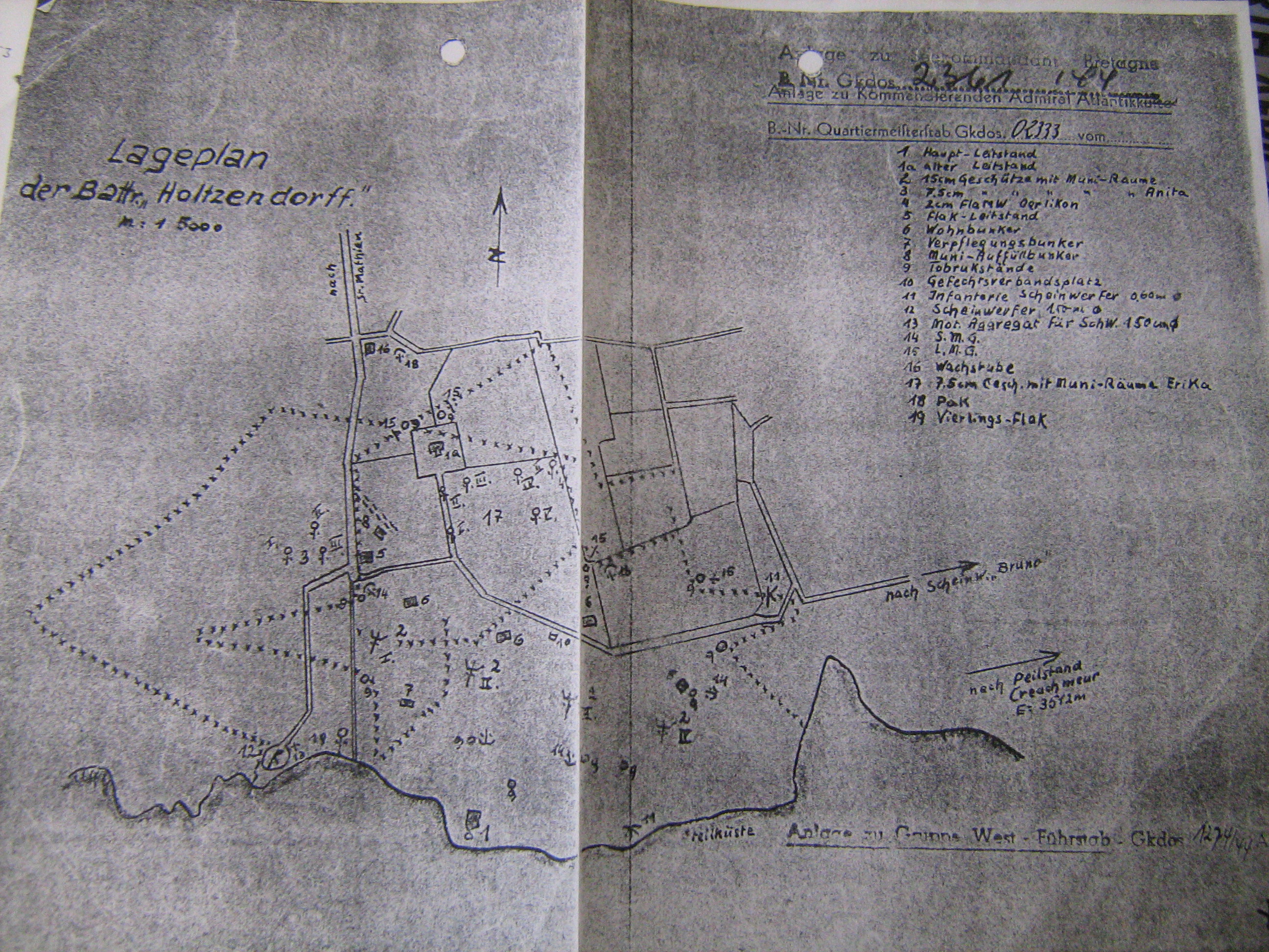 Plan de situation de la batterie des Rospects - Holtzendorff (Lageplan der Batterie "Holtzendorff")Immatriculation