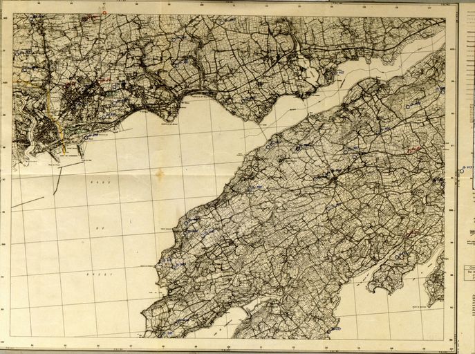 Carte allemande des ensembles fortifiés de la Festung Brest, 1944 : presqu'île de PlougastelImmatriculation