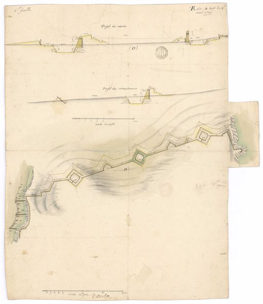 Plan et profils des retranchements et des redoutes des Lignes de Quélern (gorge de la Presqu'île de Roscanvel), 3 mars 1689 par Vauban (autographe)Immatriculation