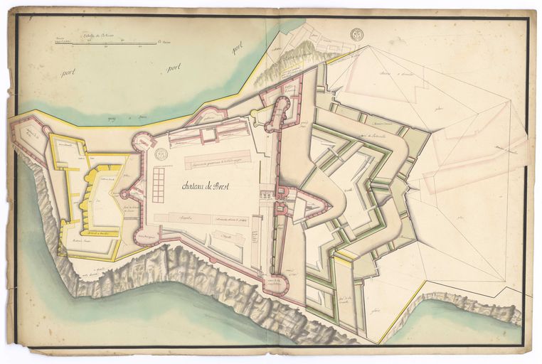 Plan du château de Brest, projet de transformation des batteries du Parc-au-Duc. 1er quart 18e siècleImmatriculation