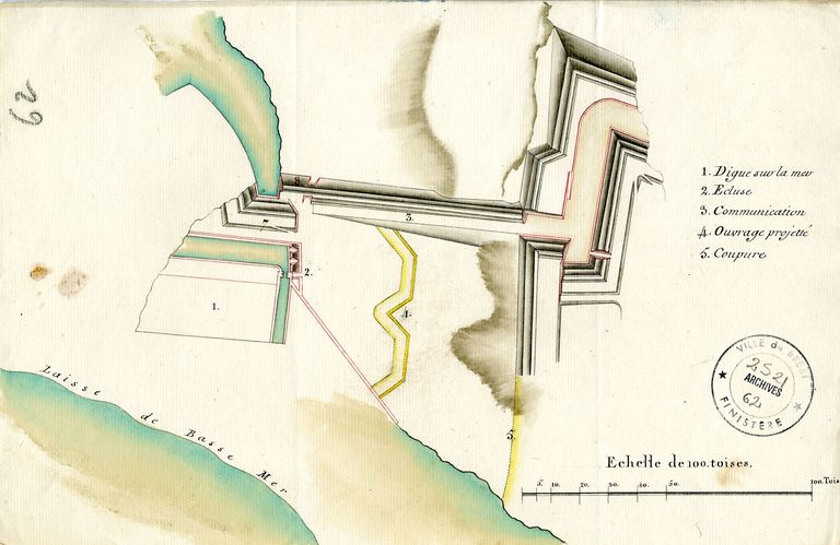 Ouvrages extérieurs de Brest : fermeture de la gauche des Lignes de Quélern, digue et écluse (?)Immatriculation