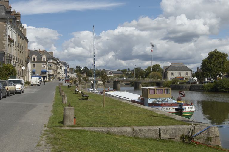 La Vilaine, péniche amarrée le long du quai Duguay-Trouin et pont au nord du Grand VannageImmatriculation