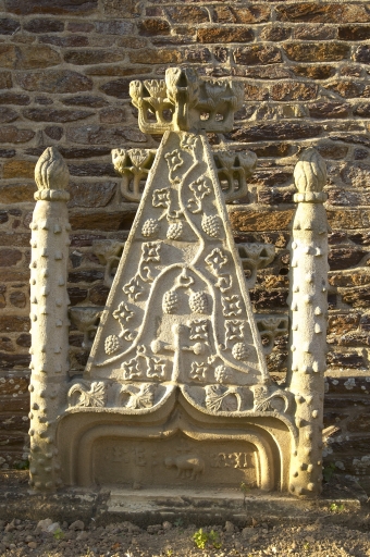 Détail d'un décor sculpté déposé à l'extérieurImmatriculation