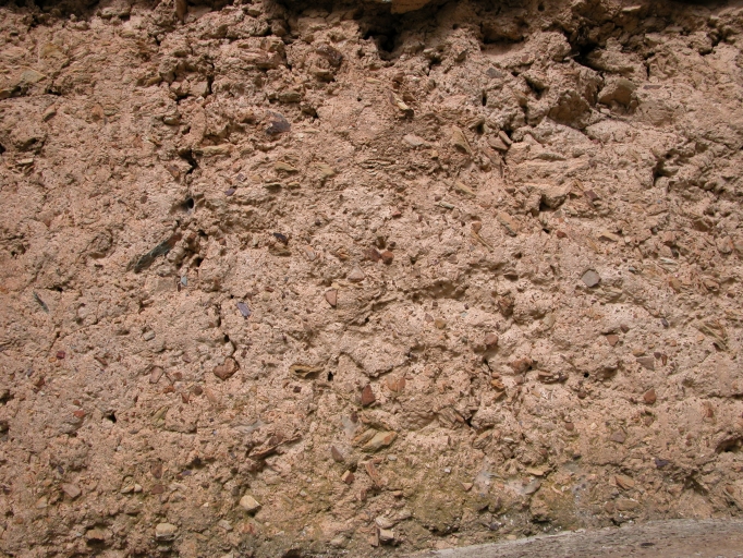Détail, mise en oeuvre en terre selon la technique de la baugeImmatriculation