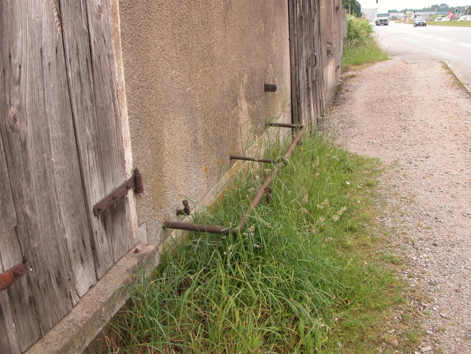 Détail extérieur, montants en fer pour l'attache des monturesImmatriculation