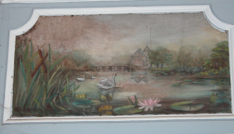 Peinture à l'huile, fin 19e siècle, décor d'un tympan de porte, lambris du salon de MouillemuseImmatriculation