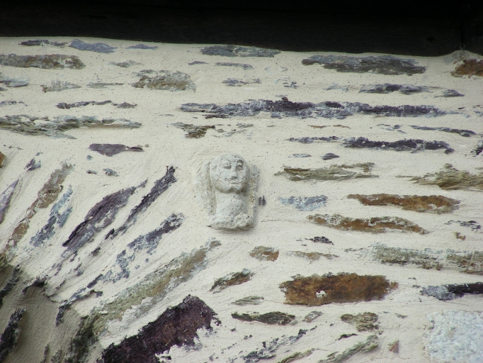 Pierre sculptée d'un buste de femme, façade estImmatriculation