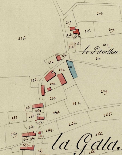 Extrait du cadastre de 1812, n° S 230 à 233Immatriculation
