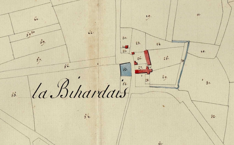 Ancien manoir de la Bihardais sur le cadastre napoléonien, remplacé part le château des OrmeauxImmatriculation