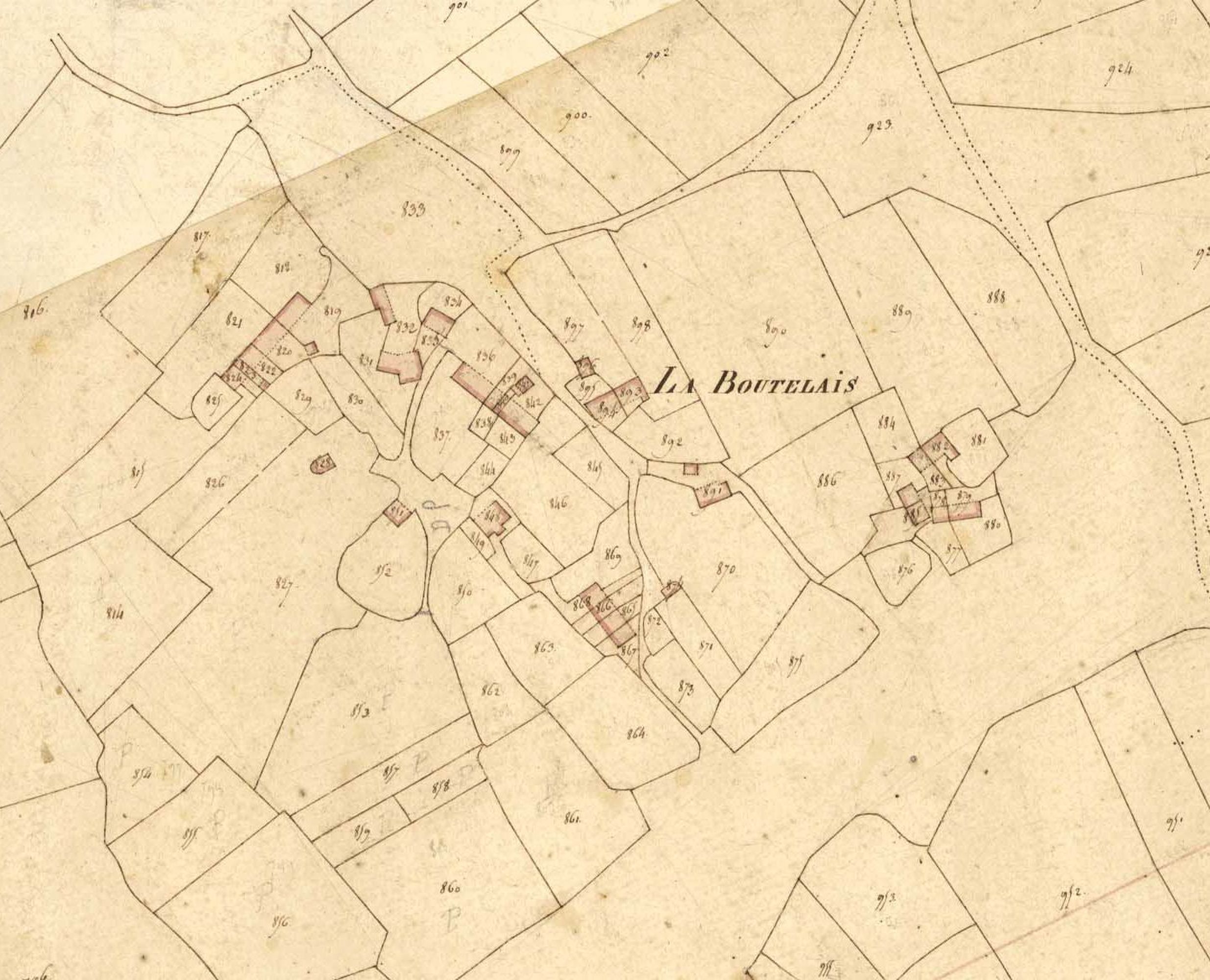 La Fontenelle (Ille-et-Vilaine). Section A2 dite de Ville Neuve, en 2 feuilles, 2e feuille. Levée par Jouches de Manquise, [1823], échelle 1/2500 e. (A.D. Ille-et-Vilaine)