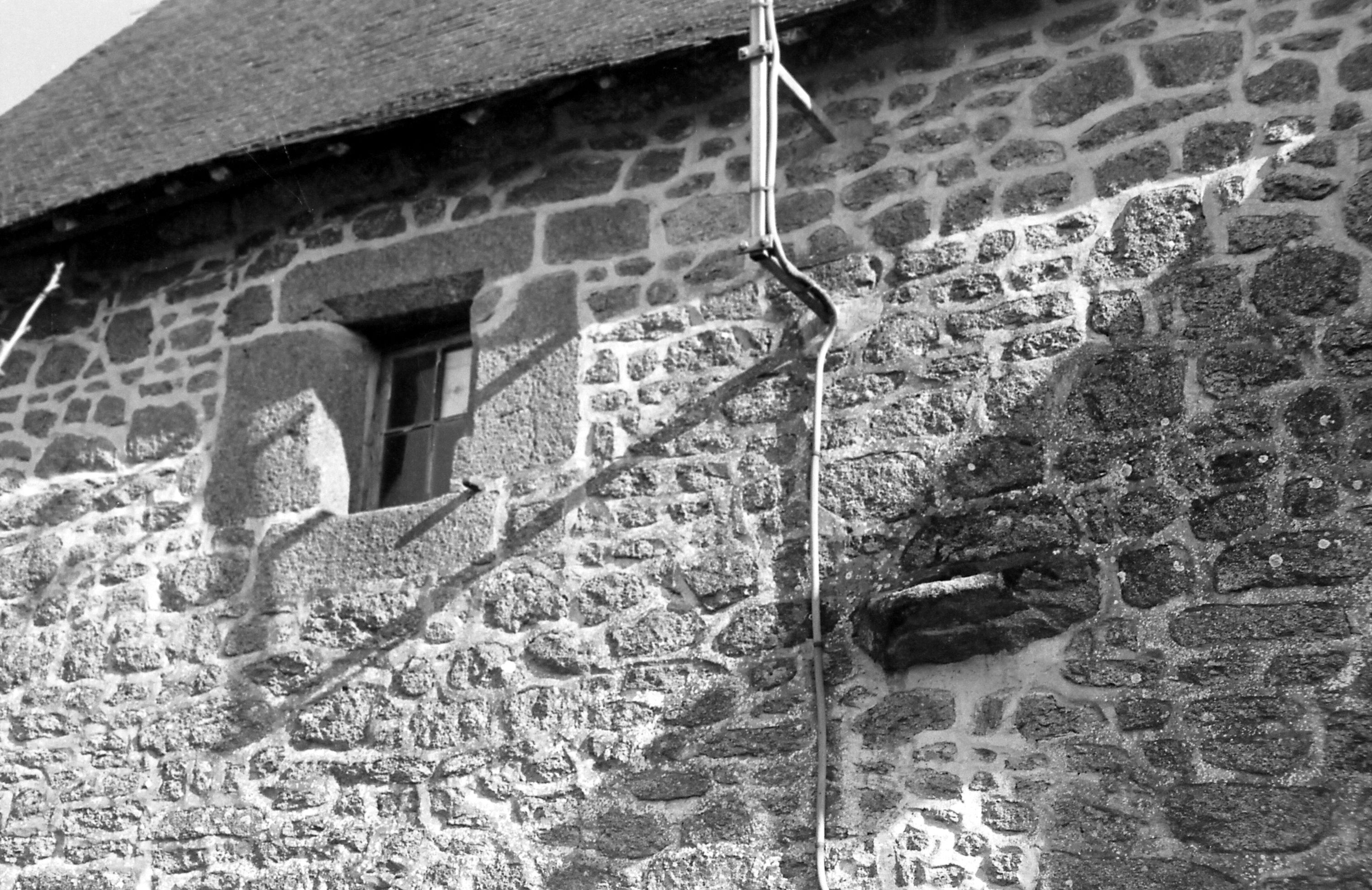 Façade postérieure : détail de la fenêtre de l'étage et de la pierre d'écoulement du lave-mainImmatriculation