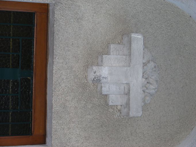 Panier fleuri sur le tympan de la porte.Immatriculation