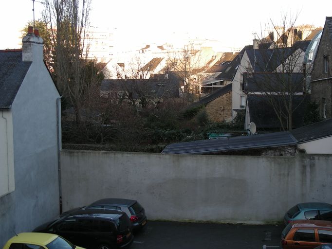 Vue des jardins des maisons de la rue de la Boucherie, rive nord.Immatriculation
