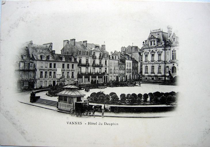 L'hôtel du Dauphin, vers 1900. Carte postale. AD Morbihan 9Fi.Immatriculation