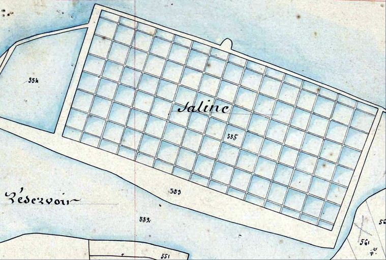 Plan cadastral 1844, section E3 : saline de Rosvellec. AD Morbihan 3P 593.Immatriculation