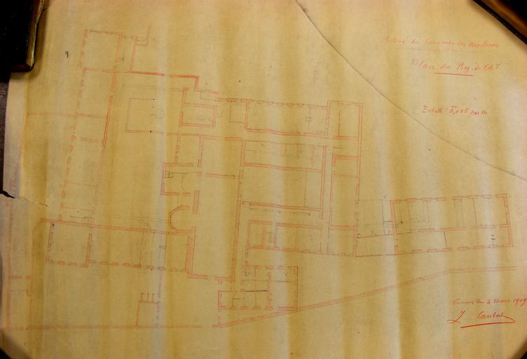 Relevé du couvent des ursulines par J. Caubert de Cléry, 1909 : plan du rez-de-chaussée. Archives de l'Evêché Vannes Y5.Immatriculation