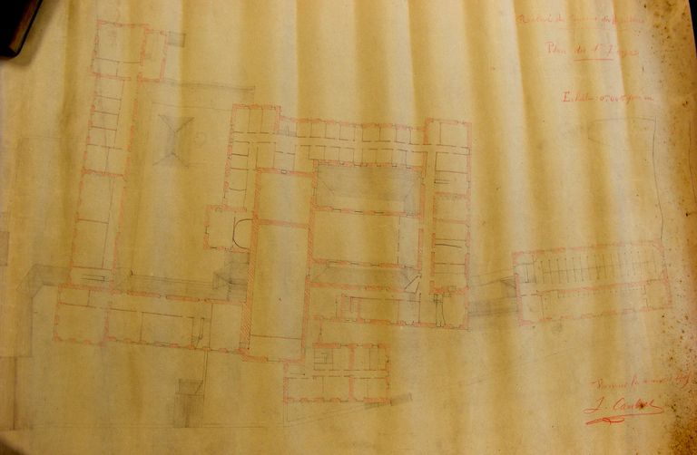 Relevé du couvent des ursulines par J. Caubert de Cléry, 1909 : plan du 1er étage. Archives de l'Evêché Vannes Y5.Immatriculation