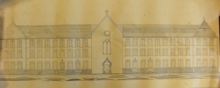 Projet d'agrandissement du Grand Séminaire par J. Caubert de Cléry, non daté : projet pour la façade ouest. Archives de l'Evêché de Vannes Y5.Immatriculation