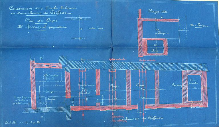 Construction d'une maison de coiffeur : plan des caves par Lafont, 1910. AM Vannes 5I162.Immatriculation