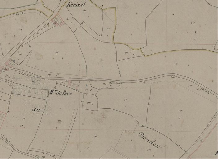 Plan cadastral de 1844 : section I3 : chemin du Bondon. AD Morbihan 3P 397/50.Immatriculation