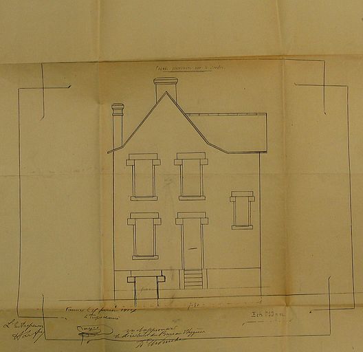 Elévation de la façade postérieure par Le Fèvre, 1914. AM Vannes 5I162.Immatriculation