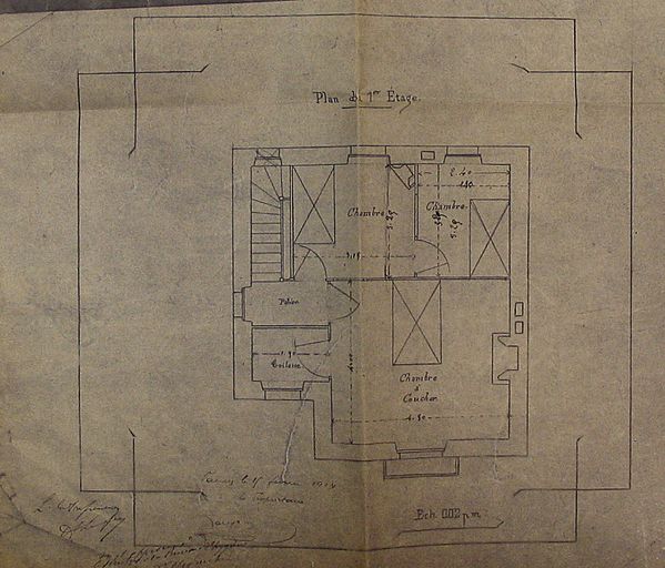 Plan du 1er étage par Le Fèvre, 1914. AM Vannes 5I162.Immatriculation