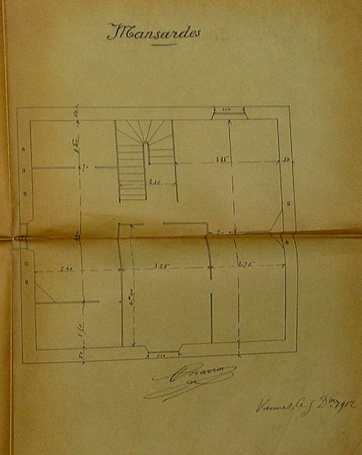 Plan des mansardes de la maison Charron, 1912. AM Vannes 5I162.Immatriculation