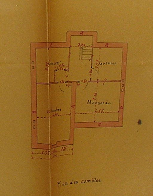 Plan des combles de la maison Huchan, 1910. AM Vannes 5I162.Immatriculation