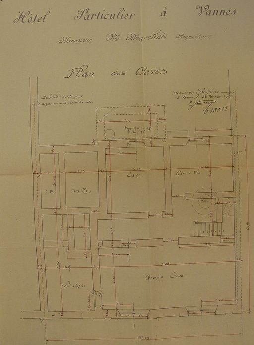 Plan des caves par E. Gemain, 1912. AM Vannes 5I162.Immatriculation