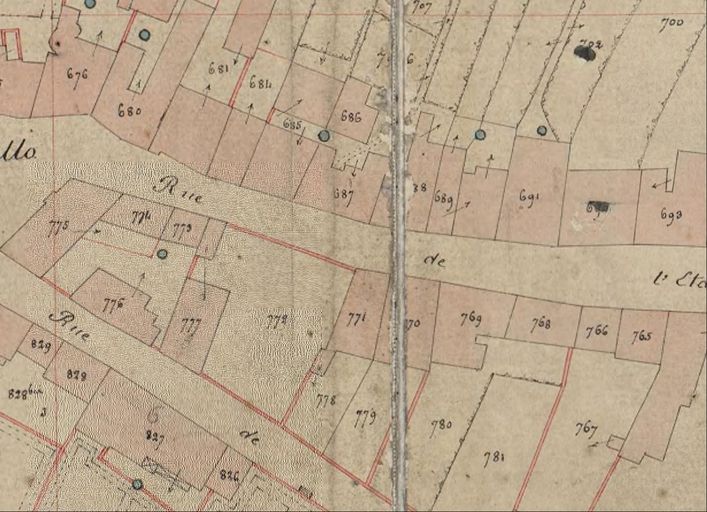 Plan cadastral de 1844, section K3 rue de l'Etang. AD Morbihan 3P297/53.Immatriculation