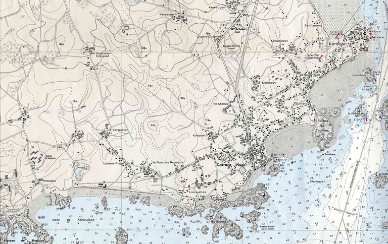 Extrait de la carte "Passes et Rade de Lorient", Paris : Service hydrologique de la Marine, levée de 1923 à 1963, 1967, n° 6470.