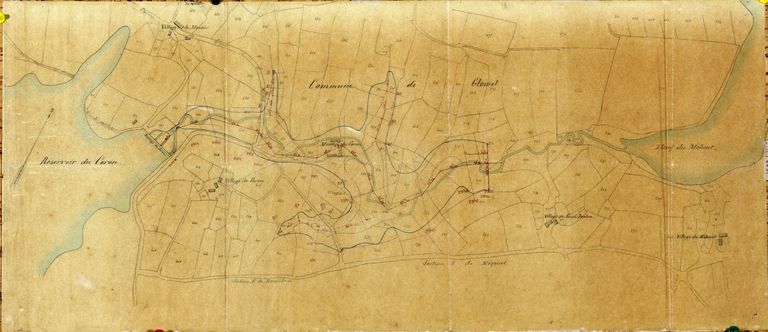 Plan de la vallée du Coron (dite de l'Enfer), en vue de l'accroissement des réserves alimentaires du bief de partage de Glomel, 1876 (DDE Morbihan, Pontivy)Immatriculation