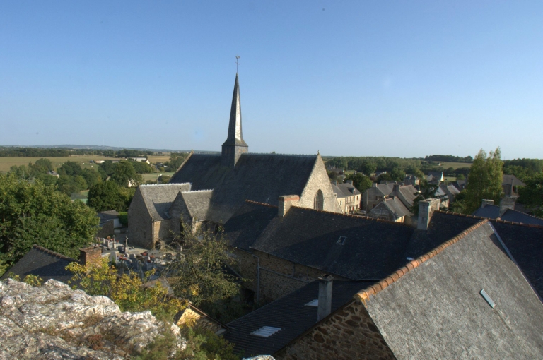 Vue générale de l'église paroissiale et des maisons du bourg depuis le nord-ouest et le gisement de quartz (2009)Immatriculation