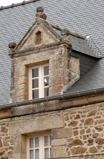 Détail, lucarne à fronton triangulaire et boules d'amortissementImmatriculation