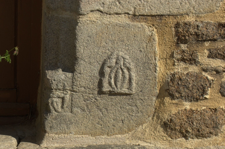 Logis de droite, détail : porte de la salle, navette sculptéeImmatriculation