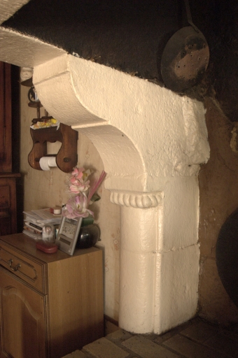 Vue intérieure, cheminée de la salle, détailImmatriculation