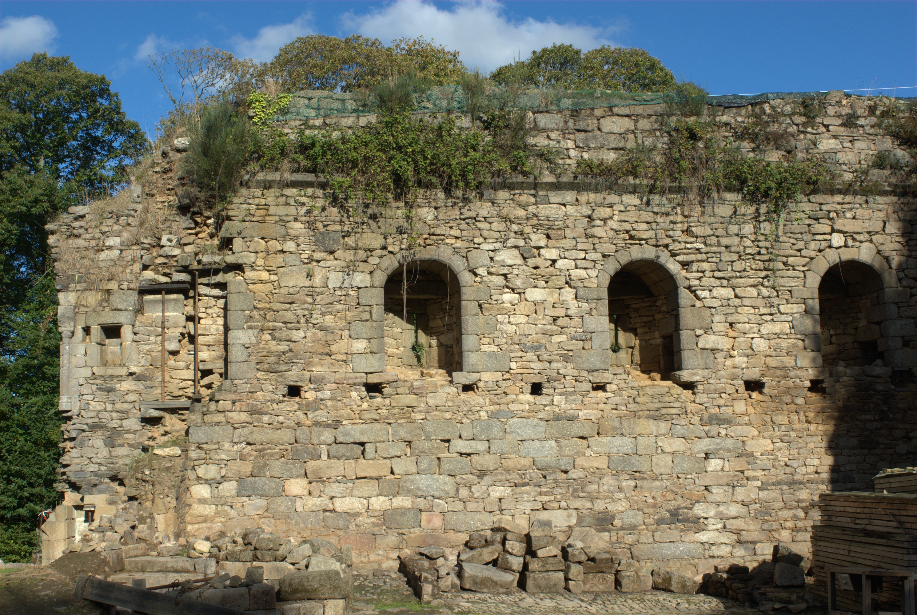 Ploubezre : château fort de Coat Frec, courtine à canonnières, photographie de 2009Immatriculation