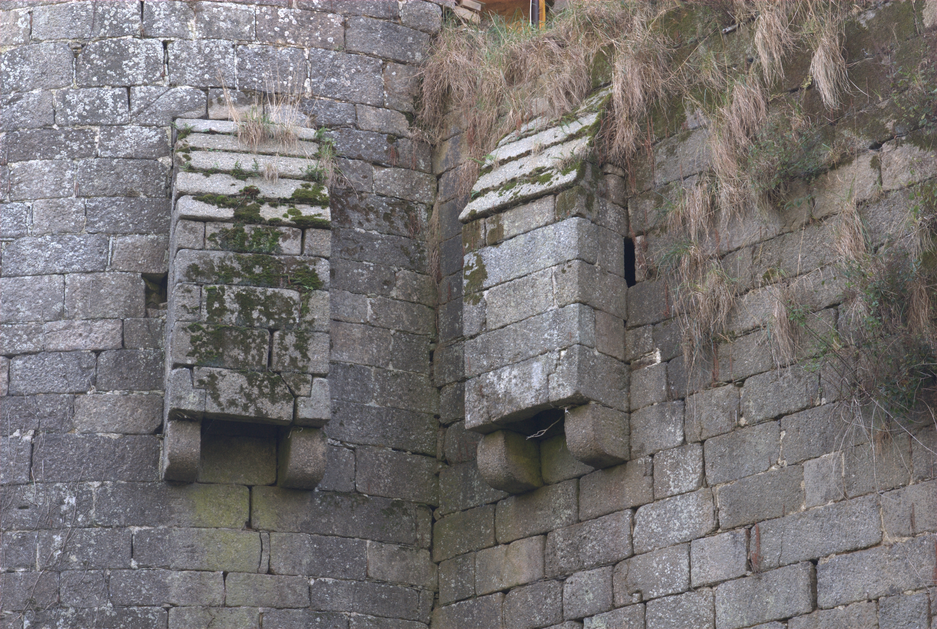 Ploubezre : château fort de Coat Frec, tour, latrines en encorbellement, photographie de 2009Immatriculation
