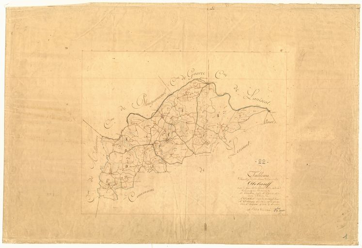 Tracé du Doré canalisé sur le cadastre de 1835 (A. D. des Côtes-d'Armor, Série 3 P)Immatriculation