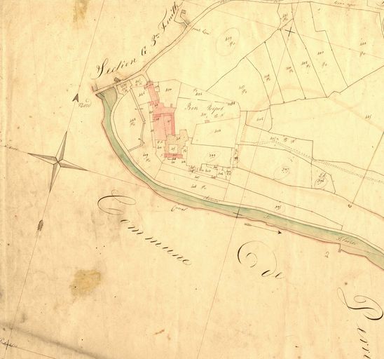 Le pont sur le cadastre de Saint-Gelven, vers 1830 (A. D. des Côtes-d'Armor, Série 3 P)Immatriculation