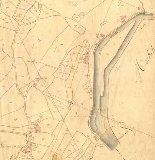 Ecluses désormais noyées, près du site de Trégnanton, sur le cadastre de Saint-Gelven, vers 1830 (A. D. des Côtes-d'Armor, Série 3 P)Immatriculation