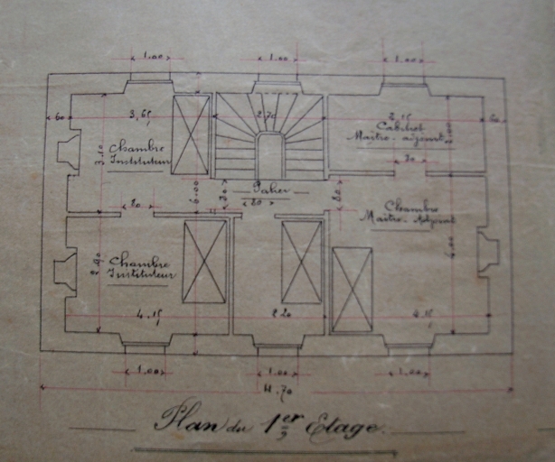 Plan de détails du logement de l'école dressé le 20 décembre 1883 par l'agent-voyer principal Kerbrat, plan du premier étage (AD 22)Immatriculation