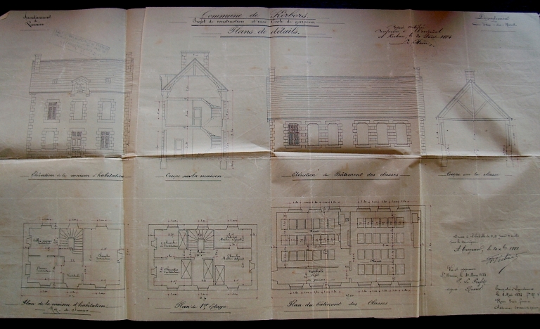 Plan de détails des bâtiments de l'école dressé le 20 décembre 1883 par l'agent-voyer principal Kerbrat (AD 22)Immatriculation