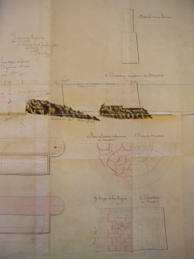 Plan de la digue, coupe et élévation du musoir, 1843 (AD 22)Immatriculation