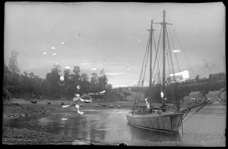 Vue générale du port de Lézardrieux, photographie noir et blanc, par Lacombe, 2ème quart du 20ème siècle (AD 22, fonds Lacombe)Immatriculation
