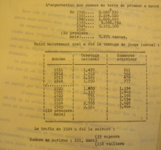 Tabeau du trafic portuaire entre 1906 et 1925 (AD 22)Immatriculation