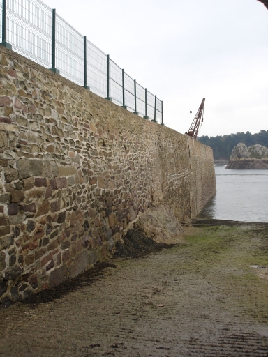 Vue du mur de la jetée du parc des Phares et Balises et de la cale de mise à l'eauImmatriculation