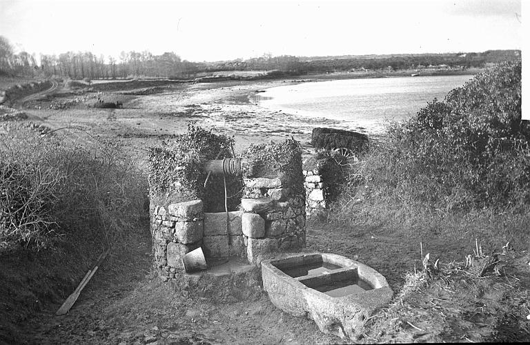 Vue d'un ancien puits et d'une auge en pierre, au Nord de l'Île à Bois, 1er quart 20ème siècle (collection particulière)Immatriculation