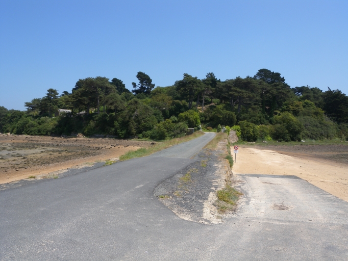 Vue de la digue-route qui permet l'accès à lîle privée de l'Île à Bois et aux plagesImmatriculation