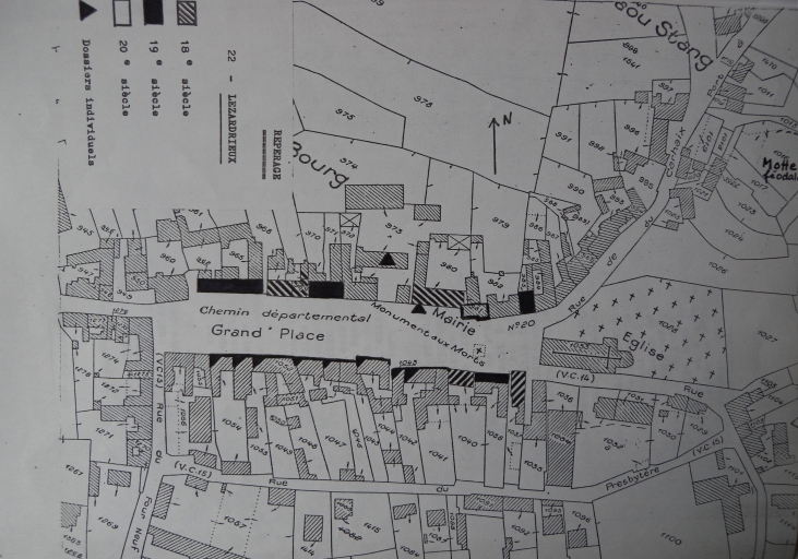 Extrait du plan cadastral de 1965 : le bourg de Lézardrieux avec l'emplacement de l'ancienne motte féodale (Mairie de Lézardrieux)Immatriculation